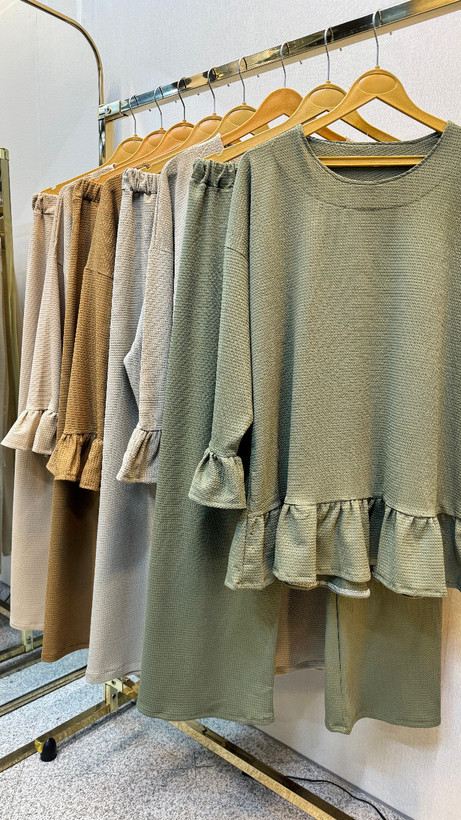 شلوار : دور کمر عادی : ۸۰،دور کمر باکشسانی :۱۱۴، دور باسن: ۱۲۲، دور ران : ۷۰، دور مچ : ۵۶،قد فاق : ۳۷، قد کار : ۱۰۲)