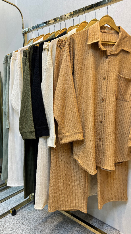 دور سینه :۱۲۴،دورباسن:۱۲۲،دوربازو :۴۶، قد آستین:۵۸ ، قدکار:۸۰