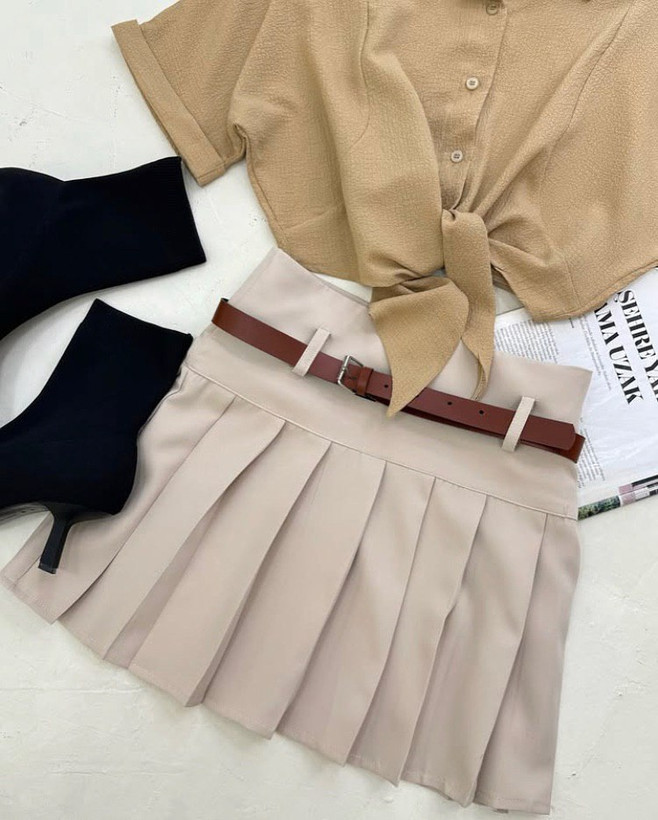 دامن پلیسه همراه کمربند