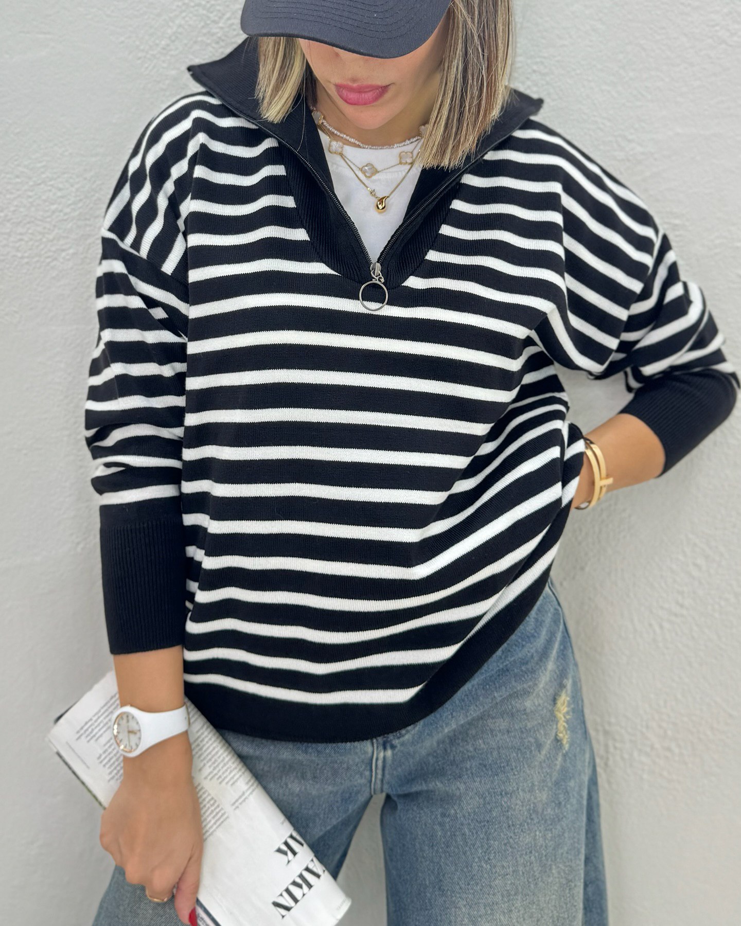 بافت پینترستی آکریل یقه اسکی نیم زیپ